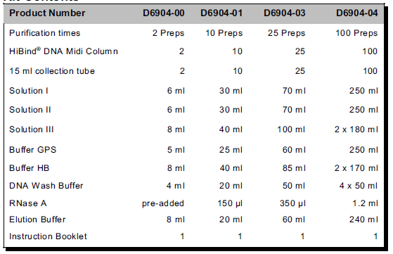 該試劑盒采用經(jīng)典的SDS堿裂解法和中量硅膠柱純化方式,適合于從25-50ml培養(yǎng)過夜的細(xì)菌培養(yǎng)液中純化高達(dá)250µg質(zhì)粒DNA。純化的質(zhì)粒可直接用于自動(dòng)測序、酶切、轉(zhuǎn)錄等各種用途。質(zhì)粒的產(chǎn)量依賴于質(zhì)粒的拷貝數(shù)、E.coli 菌株以及生長條件,一般30ml攜帶高拷貝質(zhì)粒的E.coli LB過夜培養(yǎng)液可以純化出100-250µg質(zhì)粒DNA,對于低拷貝菌株一次操作量可以高達(dá)100mL。