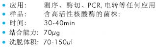 在某些大腸桿菌菌株內(nèi)常常含有高活性的核酸酶,甚至多次接種的DH5α菌株(EndoA-)也會(huì)因發(fā)生突變而導(dǎo)致菌株的核酸酶復(fù)活。在常規(guī)的堿裂解法中,由于核酸酶不易失活而導(dǎo)致提取的質(zhì)粒DNA發(fā)生降解,即使是純化的質(zhì)粒冷藏于-20°C,降解也常有發(fā)生。該系列試劑盒采用高活性的蛋白酶消化方法,能徹底去除菌株自身的核酸酶,從而保證純化的質(zhì)粒不會(huì)發(fā)生降解。因此,該系統(tǒng)適合于需要將純化的質(zhì)粒長(zhǎng)期冷藏和頻繁解凍使用的用戶,適合于從含高活性核酸酶的菌株中純化質(zhì)粒DNA,適合于從動(dòng)物身上剛分離出來的菌株中提取質(zhì)粒。HP Plasmid Mini Kit I可以從1-5ml過夜培養(yǎng)菌液中提取出30ug 高純質(zhì)粒,HP Plasmid Mini Kit II可以從5-15ml過夜培養(yǎng)菌液中提取70ug 高純質(zhì)粒。