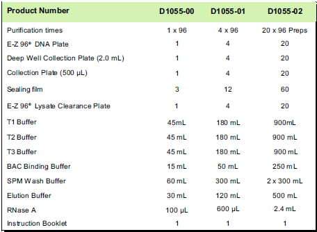 E-Z 96® Fastfilter BAC/PAC DNA Kit提供了快速、可靠、高通量純化出BAC/PAC/P1等大型質(zhì)粒DNA的方法,采用堿裂解方式裂解細(xì)胞后通過E-Z 96® Lysate Clearance Plate進行去除菌裂解液中的雜質(zhì),然后通過E-Z 96® DNA Plate進行純化BAC/PAC/P1等大型質(zhì)粒DNA。