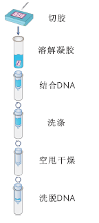 DNA產(chǎn)物經(jīng)瓊脂糖凝膠電泳分離后,切出所需的DNA片段,然后加入結(jié)合液溶解凝膠,溶解后轉(zhuǎn)移到HiBind®柱上離心吸附DNA,經(jīng)簡單的洗滌后,用10-15µl無菌水洗脫DNA。純化的產(chǎn)物可用于T-A連接、PCR測序、酶切、各類型的標(biāo)記反應(yīng)等。