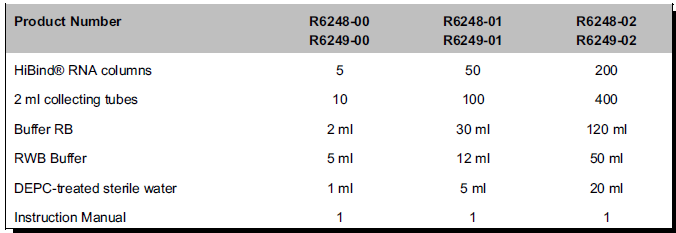 E.Z.N.A RNA Probe Purification Kit 適合于從各種轉錄產物中純化高達至50ug的總RNA 或低至pg級的RNA。HiBind 結合柱和理想緩沖液保證純化的RNA 不帶有核苷酸,游離的標記物,酶以及各種鹽。