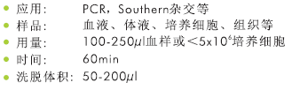從100-250ul血樣、唾液、拭子、組織、干血斑或<5x106個培養(yǎng)細胞中提取基因組DNA