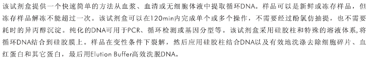 從1-4ml體積的血漿、血清和無細胞體液中提取循環(huán)DNA