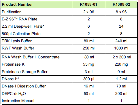 基于 E.Z.N.A.® Tissue RNA Kit (R6688)一樣的原理,該試劑盒專門設(shè)計高通量地從96個培養(yǎng)細胞樣品或富含纖維的動物組織樣品中提取總RNA。