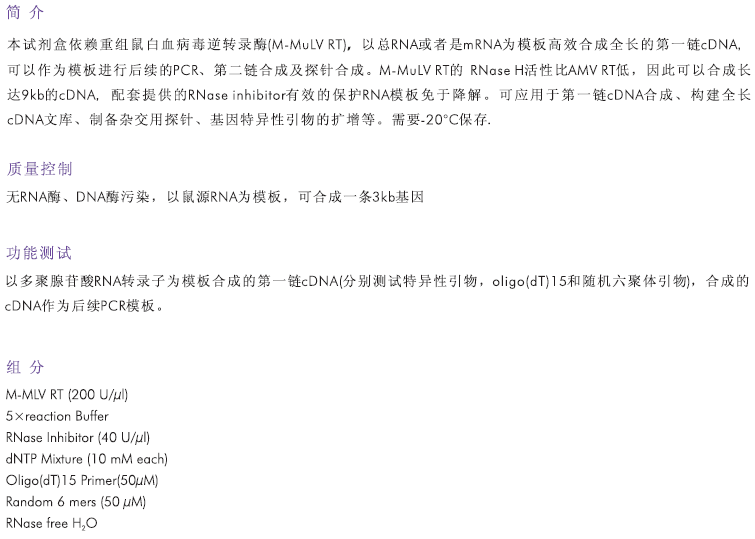 M-MLV 第一鏈cDNA合成試劑盒